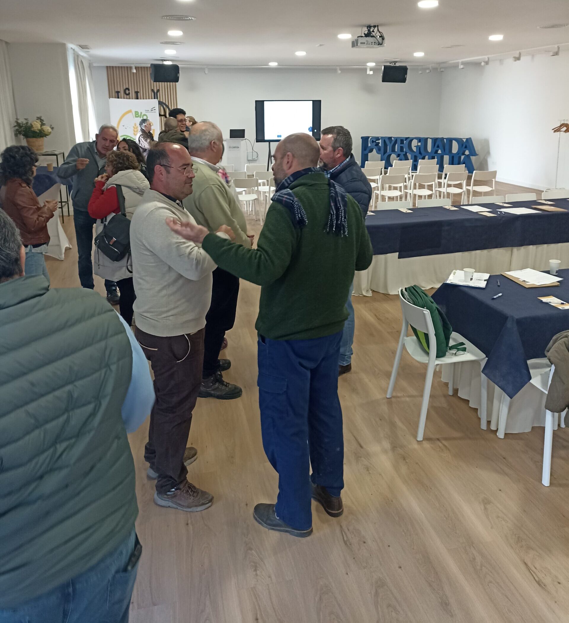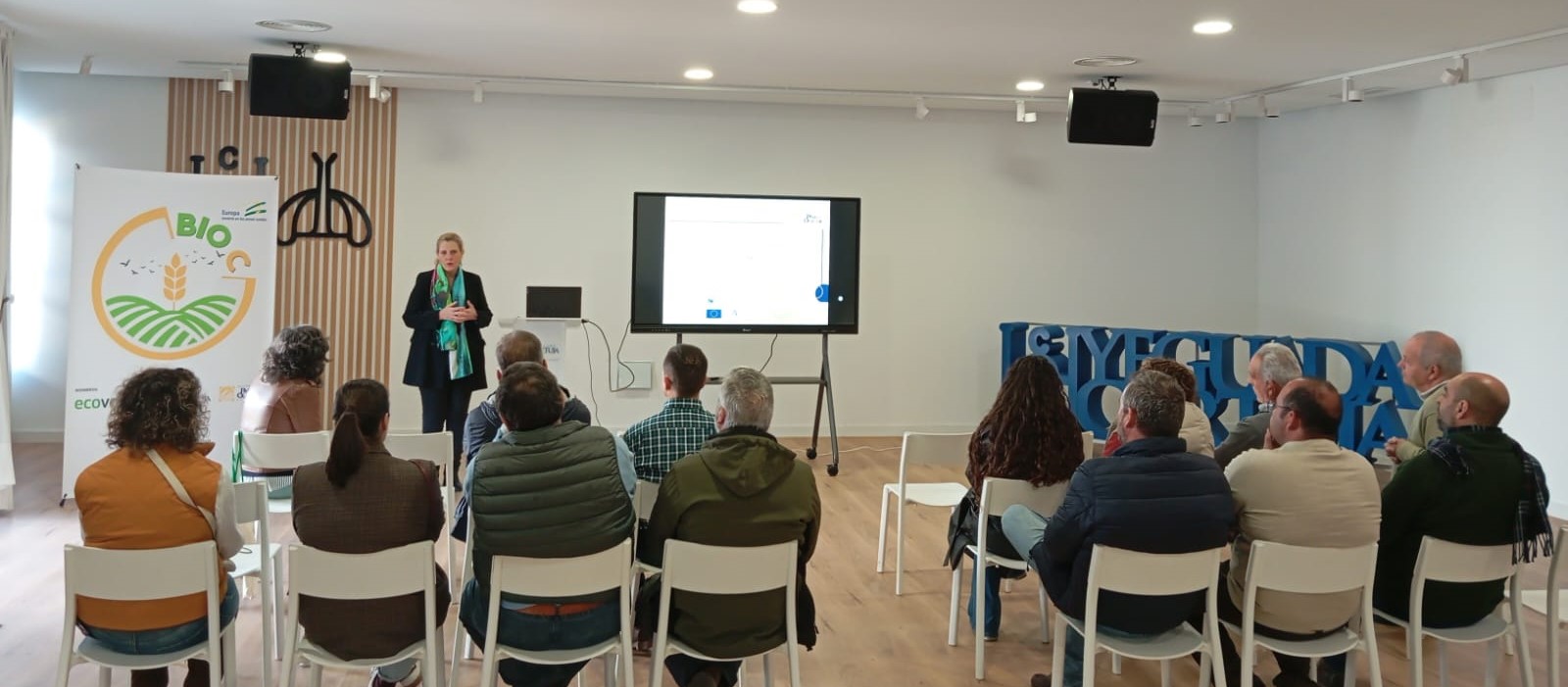 Seguidamente, Gloria Guzmán, profesora e investigadora de la Universidad Pablo de Olavide (UPO) de Sevilla, contextualizó los objetivos y el enfoque del proyecto BIO C, dando paso al “taller participativo” entre dos grupos de agricultores: unos familiarizados y otros no familiarizados con las variedades tradicionales.
