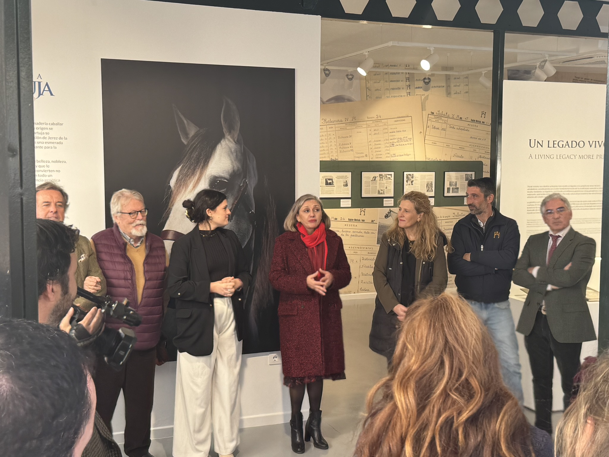 El acto de inauguración fue presidido por Judit Anda Ugarte, presidenta de la Yeguada Cartuja, quien destacó que “esta exposición permanente representa el único espacio en el mundo dedicado a la estirpe cartujana y es una magnífica oportunidad de disfrutar de nuevos materiales nunca antes mostrados”